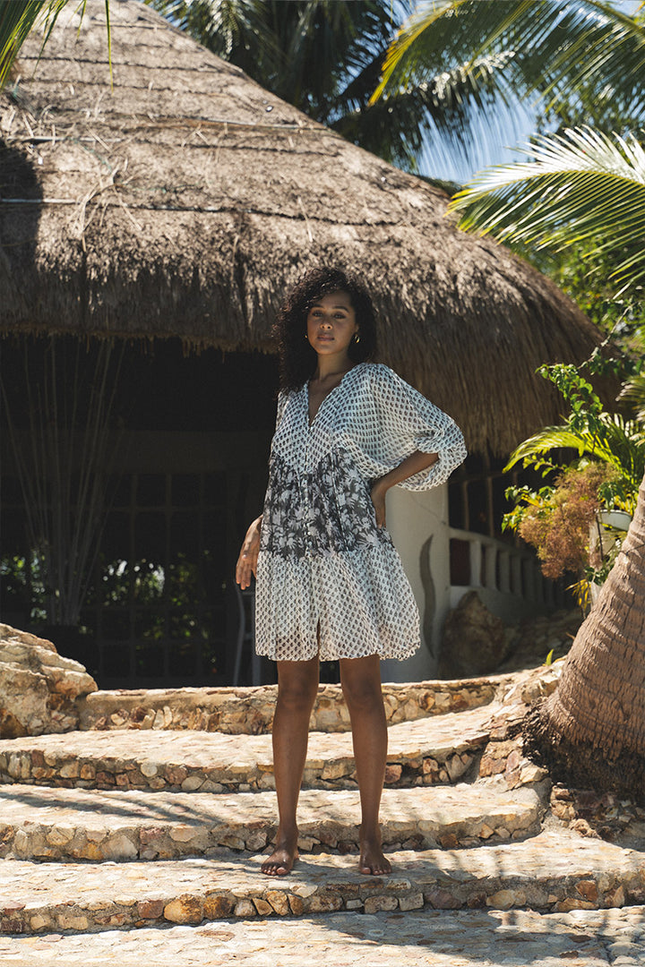 Celebrating our slow fashion ethos, Nora is an ode to the art of handmade. Beginning with four wood blocks intricately hand-carved to create two traditional floral designs, skilled artisans then use the blocks to slowly and carefully hand print delicate noir hues with a cacao outline upon the softest cotton voile. Tiers of printed fabric have then been gracefully layered and finished with mother-of-pearl buttons from bodice to base, forming this free flowing feminine style lovingly hand-crafted by a small group of women in Jaipur, India.