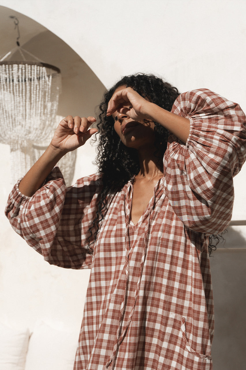 I purchased this dress in both the red clay and taupe colors, and I was quite a bit nervous for so long to try Daughters of India dresses due to the price.. but my goodness I LOVE these dresses! I can see these being a part of my wardrobe forever and styling them for all seasons. Definitely recommend if you are on the fence or nervous to try due to the price - they are quality and very much worth the investment :)